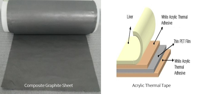 - - Composite Thermal Sheet (low-cost composite graphite) → Better heat dissipation performance than natural graphite, Excellent price competitiveness (350-400w/mk)